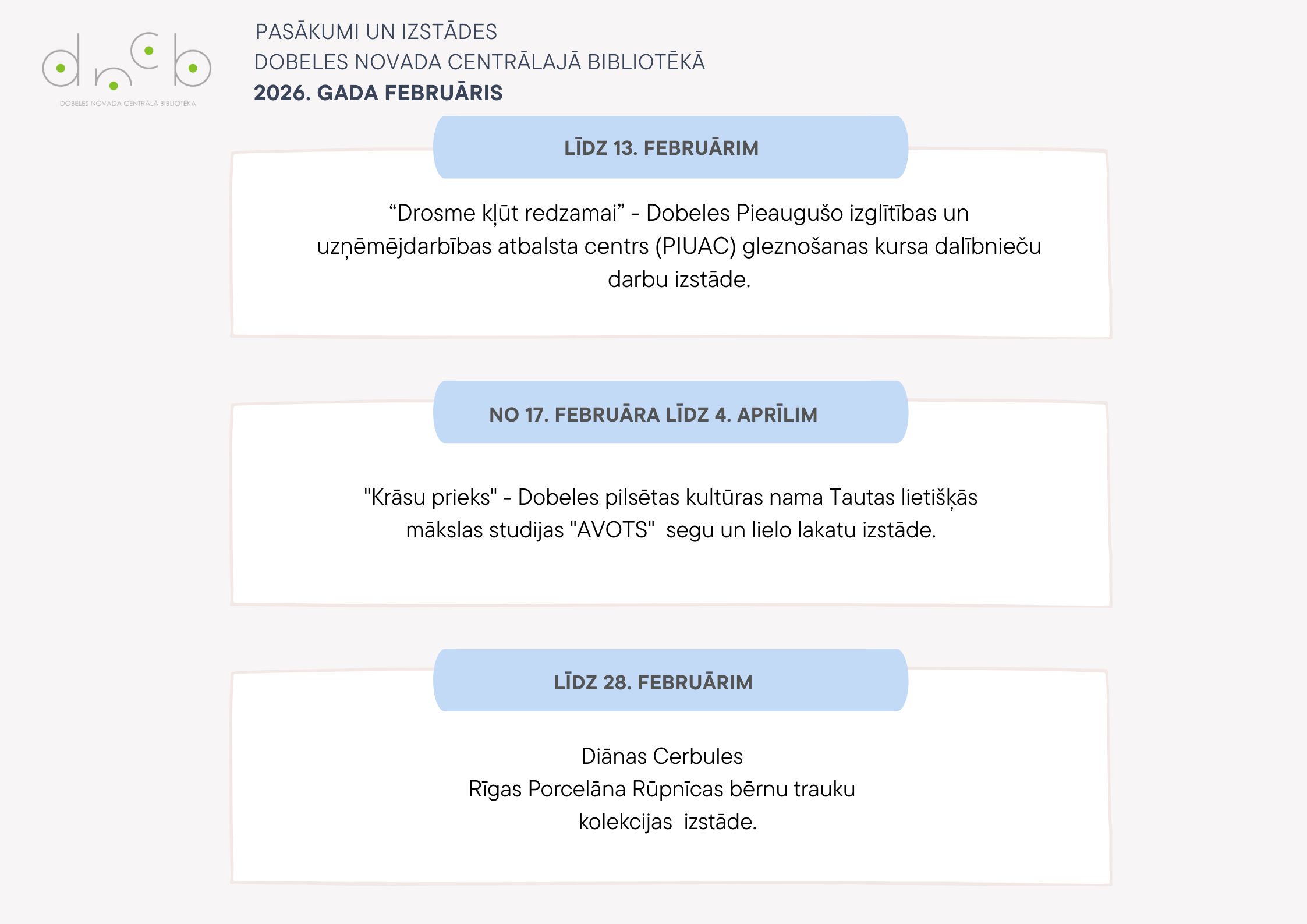 Februāra pasākumi Dobeles novada Centrālajā bibliotēkā 03.02.2026