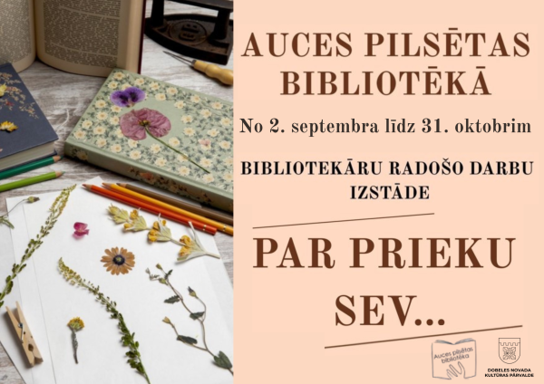 Auces bibliotēkas simtgades svinību mēnesī un līdz pat 30. oktobrim aicinām apmeklēt Auces pilsētas bibliotēkas izstāžu telpā iekārtoto izstādi Par prieku sev....