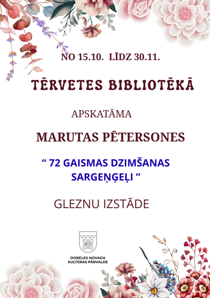 No 15. oktobra līdz 30. novembrim Tērvetes bibliotēkā apskatāma gleznu izstāde “72 gaismas eņģeļi” un Marutas Pētersones grāmata “72 gaismas dzimšanas eņģeļi”.