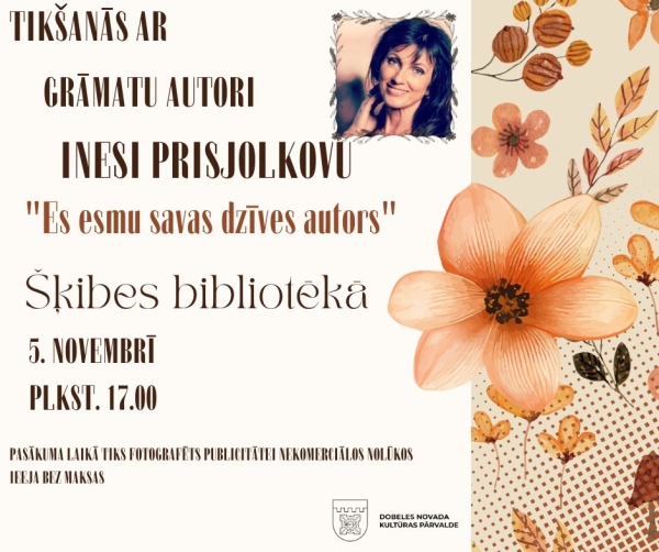 5. novembrī plkst. 17.00 Šķibes bibliotēka aicina uz īpašu tikšanos ar grāmatu autori Inesi Prisjolkovu. Sarunas centrā būs tēma "Es esmu savas dzīves autors" - par spēju apzināties, veidot un dzīvot savu dzīvi ar jēgu un iekšēju spēku.