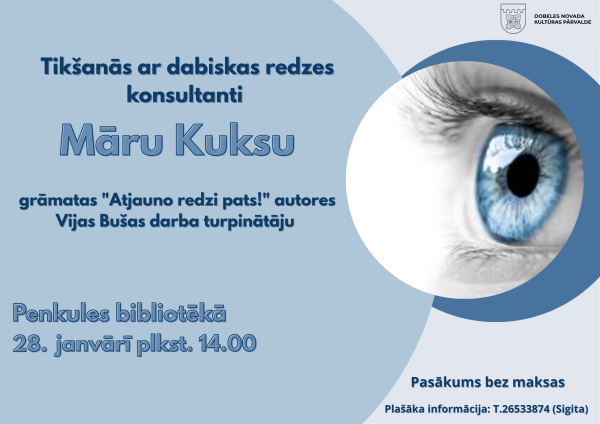 Penkules bibliotēka aicina interesentus 28. janvārī plkst. 14.00 uz tikšanos ar dabiskas redzes konsultanti Māru Kuksu.