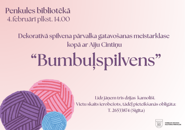Nāc uz bumbuļspilvenu meistarklasi Penkules bibliotēkā kopā ar Aiju Cintiņu!