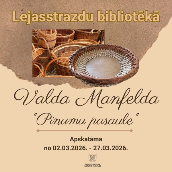 Lejasstrazdu bibliotēkā no 2. marta līdz 27. martam apskatāma Valda Manfelda pinumu izstāde.