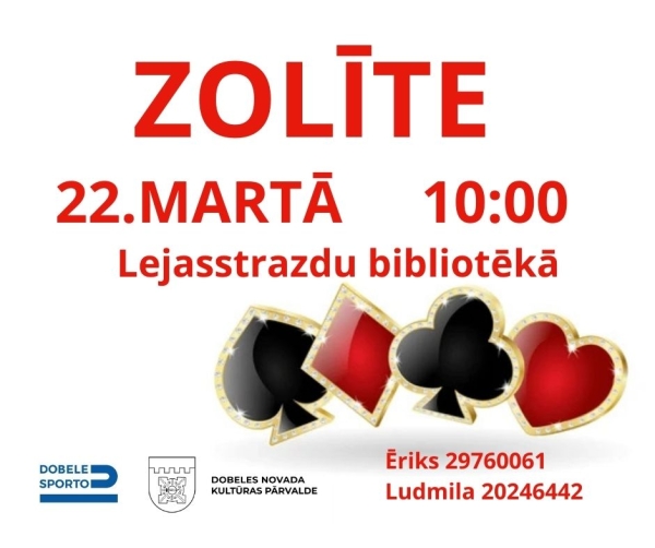 22. martā plkst. 10.00 Lejasstrazdu bibliotēkā notiks zolītes turnīrs. Aicināti piedalīties gan pieredzējuši spēlētāji, gan iesācēji, kuri vēlas izmēģināt spēles azartu draudzīgā un sirsnīgā atmosfērā.