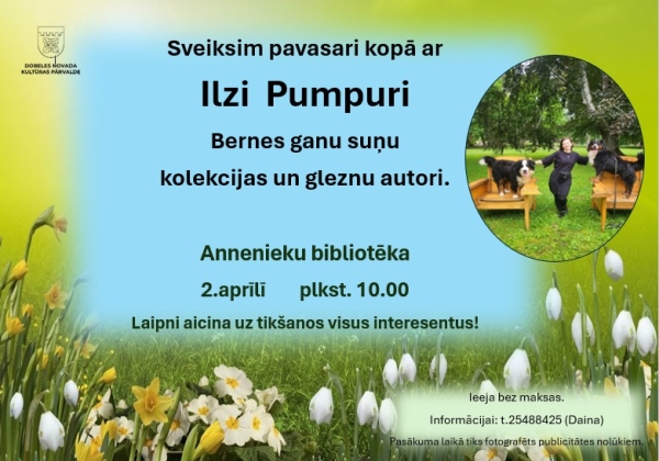 Aicinām kopā sveikt pavasari, baudīt sarunas un iepazīt Ilzi Pumpuri Bernes ganu suņu kolekcijas un gleznu autori.