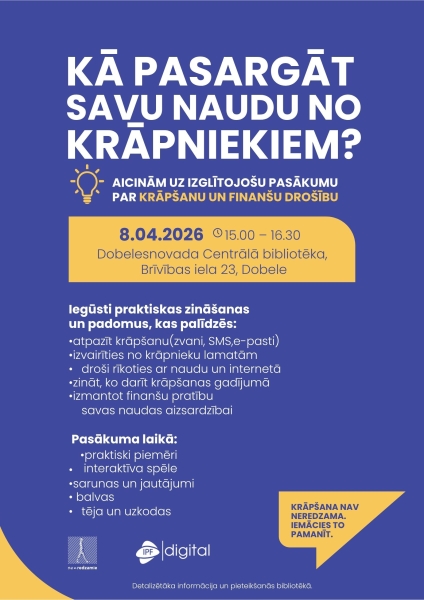 Aicinām uz izglītojošu un praktisku pasākumu par krāpšanu un finanšu drošību.