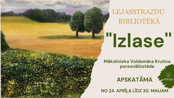 No 24. aprīļa līdz 30. maijam Lejasstrazdu bibliotēkā apmeklētājiem ir iespēja iepazīt daudzpusīgā mākslinieka Voldemāra Krutina personālizstādi “Izlase”. Ekspozīcija piedāvā ieskatu autora radošajā darbībā, akcentējot viņa glezniecībā nozīmīgākās tēmas: Latvijas kultūrainavu, dabu un ceļojumu iespaidus.