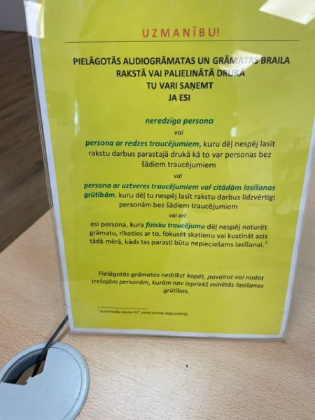 <- AtpakaļBibliotēkas pieejamība visiem pieredze no Latvijas Neredzīgo bibliotēkas. 📍 2025. gada 30. jūlijā Dobeles novada Centrālās bibliotēkas darbinieki devās pieredzes apmaiņas braucienā uz Latvijas Neredzīgo bibliotēku, lai iepazītos ar tās darbu, pieejamajiem resursiem, tehnoloģijām un pakalpojumiem cilvēkiem ar redzes traucējumiem. 👁🗨🎧🦽 Pieejamie formāti cilvēkiem ar redzes, dzirdes un kustību traucējumiem Latvijas Neredzīgo bibliotēkā pieejami dažādi informācijas formāti un tehnoloģiskie risinājumi, kas pielāgoti lietotājiem ar īpašām vajadzībām: 📖 Grāmatas Braila rakstā pieejamas gan senākas, gan jaunas grāmatas. Tās ir izdotas vairāku sējumu formā, jo Braila rakstā teksts aizņem būtiski vairāk vietas nekā parastajā drukā. 🔎 Palielināta drukas grāmatas piemērotas lasītājiem ar vājredzību. 🧠 Grāmatas vieglajā valodā paredzētas cilvēkiem ar mācīšanās grūtībām, kognitīviem traucējumiem vai vienkārši tiem, kam nepieciešams vieglāk uztverams saturs. 🎧 Audiogrāmatas: o CD diski, o zibatmiņas ērts un mūsdienīgs formāts, kas piemērots datoriem un atskaņotājiem, o pieejamas arī tiešsaistes klausīšanai. 🤟 Grāmatas un pasakas ar zīmju valodu piemēram: o Eža kažociņš ar iekļautu zīmju valodas tulkojumu, o diski ar latviešu tautas pasakām, tautasdziesmām un pasaku Zaķis un lapsa zīmju valodā. 📚 Drukāta grāmata + audiogrāmata kombinēti formāti, kas palīdz lasītājiem uztvert saturu vairākos veidos. 💡 Par tehnoloģijām un pieejamības rīkiem Tika demonstrēti dažādi praktiski rīki un tehnoloģijas, kas palīdz cilvēkiem ar redzes traucējumiem ikdienā orientēties, uztvert apkārtni un iegūt informāciju. Starp tiem bija: Baltais spieķis svarīgs pārvietošanās palīglīdzeklis, kas palīdz uztvert vidi un šķēršļus. Gaismas noteicējs neliels aparāts ar skaņas signālu, kas norāda, kurā virzienā telpā ir gaisma vai tumsa; signāls mainās atkarībā no apgaismojuma intensitātes. Krāsu noteicējs ierīce, kas ar balsi nosaka apģērba vai priekšmeta krāsu, noderīga, piemēram, apģērba izvēlē. Citi ikdienā noderīgi priekšmeti, piemēram: o taktilie marķieri priekšmetu apzīmēšanai, o runājoši pulksteņi, o palielināmās ierīces ar apgaismojumu, o skaņas signālu ierīces ikdienas lietošanai. Šie rīki palīdz neredzīgiem un vājredzīgiem cilvēkiem saglabāt neatkarību un drošību ikdienas dzīvē. 🎧 Grāmatu ierakstu studija Tika apmeklēta audio studija, kurā notiek grāmatu ierunāšana. Bija iespēja izmēģināt arī pašiem ierunāt fragmentu, gūstot ieskatu šajā radošajā procesā. 🗂️ Novadpētniecība un tematiskās mapes Bibliotēka nodarbojas arī ar novadpētniecību: Apkopota informācija par Strazdu muižas ciemu un citiem Latvijas novadiem. Tiek veidotas tematiskās mapes, kas aptver gan vietējo, gan pasaules kontekstu. 📚 Lasītveicināšanas pasākumi Bibliotēka aktīvi iesaistās lasītveicināšanas aktivitātēs: Vasaras lasīšanas izaicinājums 2025 Lasi un vērtē '25, kas notiek līdz 2026. gada 31. janvārim. Tajā aicināti piedalīties bērni, jaunieši un vecāki. o Lasīšanai pieejamas 29 grāmatas sešās vecumgrupās, tostarp jaunums grupa 7+. o Visas grāmatas pieejamas arī audio formātā, lai palīdzētu bērniem ar lasīšanas grūtībām. Bibliotēkas lietotāji veido arī savu avīzīti Bazūbe, kurā atspoguļo notikumus bibliotēkas dzīvē. 📦 Komplektēšana un apstrāde Ekskursijas noslēgumā tika iepazīta bibliotēkas komplektēšanas un apstrādes nodaļa: Tika demonstrēts, kā tiek komplektēti un apstrādāti diski. 🌿Šī tikšanās ar Latvijas Neredzīgo bibliotēkas pārstāvjiem bija ļoti vērtīga, lai labāk izprastu cilvēku ar redzes, dzirdes un kustību traucējumiem vajadzības, kā arī viņu iespējas lasīt un piekļūt informācijai. 🤝Dobeles novada bibliotēka turpina sadarbību ar Latvijas Neredzīgo bibliotēku, piedāvājot saviem lasītājiem audiogrāmatas, grāmatas palielinātā drukā, grāmatas vieglajā valodā, kas pielāgoti dažādām lasīšanas un uztveres vajadzībām. #latvijasneredzigobiblioteka #bibliotēka #Dobelesnovadabibliotēkas #Dobele #dobelesnovads #brauciens