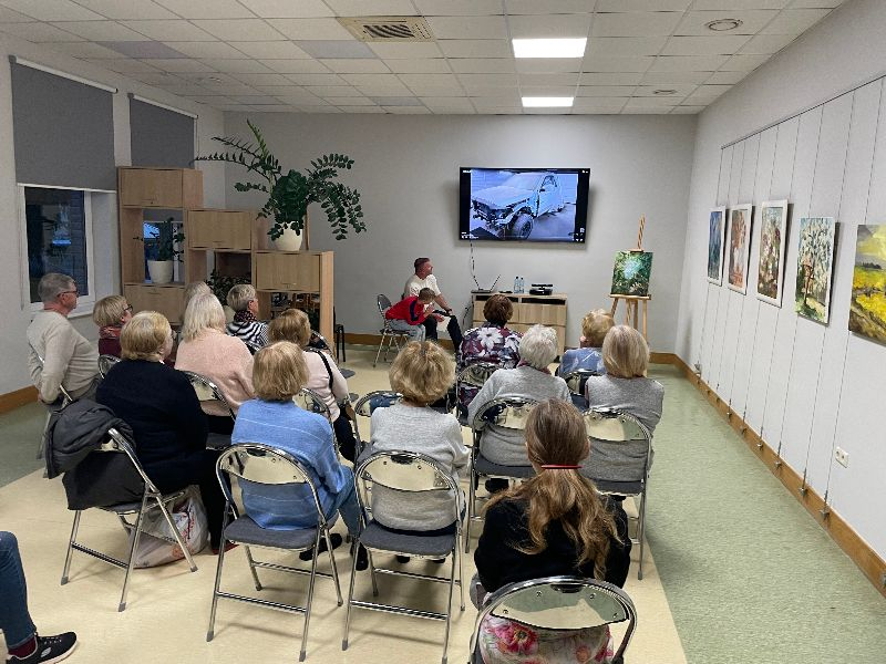 <- AtpakaļTikšanās ar Ivaru Cīruli Dobeles novada Centrālajā bibliotēkā 23. oktobrī Dobeles novada Centrālajā bibliotēkā viesojās ceļotājs, sportists, raidījuma Ceļot bez robežām veidotājs un bijušais pasaules čempions spēka trīscīņā Ivars Cīrulis, kurš dalījās savos dzīves un ceļojumu piedzīvojumos. Ivars stāstīja par savu sportista karjeru - 25 gadus sportā, ar stingru režīmu un treniņiem sporta zālē. Viņa talismans un līdzbraucējs daudzos ceļojumos ir dēls Rodrigo. Ceļot viņš sācis jau skolas gados, kad dejoja sporta dejas un piedalījās sacensībās. Pirmais ārzemju izbrauciens uz Itāliju, kurā devies kopā ar mammu, sniedzis lielu iedvesmu un mīlestību pret kalniem un Alpu ainavām. Viens no dzīves lūzuma brīžiem bijis konflikts ar treneri, kas novedis pie neplānota Eiropas ceļojuma un jauna dzīves redzējuma. Pēc atgriešanās sportā viņš kļuva par pasaules čempionu spēka sportā, piedzīvojis arī traumas un smagu atveseļošanos. Jauns dzīves posms sākās, kad Ivars pievērsās filmēšanai un rakstīšanai. Sadarbībā ar Re:TV tapušas raidījumu sērijas Ceļot bez robežām un Gatavo ar smaidu. Lai gan pirmo sēriju veidošana bijusi izaicinoša, šodien viņš filmēšanas procesu sauc par iedvesmojošu piedzīvojumu. Pirms 14 gadiem viņš izveidoja žurnālu, kur apguva blogu rakstīšanas un veidošanas pamatus. Tagad Ivars plāno uzrakstīt grāmatu, sadarbojoties ar skolotāju, kas palīdz valodas pilnveidē. Ivara ceļojumu pieredze ir plaša - viņš pabijis Rumānijā, Bulgārijā, Turcijā, Albānijā, Šrilankā, Seišelās un citviet. No piedzīvojumiem spilgti atmiņā palicis gadījums Serbijas cietumā, kad ceļojuma laikā ar draugu negaidīti tikuši aizturēti. Palīgā toreiz nācis draugs, bijušais sportists Viktors Ščerbatihs. Ivars atzina, ka ceļošana viņam ir dzīvesveids - ceļoju no viena piedzīvojuma uz nākamo, tomēr visvairāk viņš novērtē mieru mājās - zāles pļaušanu vai kādu citu dārza darbu. Viņa jaunākais projekts ir ceļojumu sērija par Albāniju, kas skatītājiem būs redzama jau nākamgad janvārī. Tikšanās noritēja siltā un iedvesmojošā atmosfērā, kur klausītāji ar interesi sekoja līdzi Ivara stāstiem par piedzīvoto. Saruna raisījās brīvi un dzīvi, ļaujot sajust gan ceļojumu garu, gan cilvēka spēku un neatlaidību. Ar Ivaru Cīruli tiekamies bieži arī kadru otrajā pusē, viņa veidotajos raidījumos, bet šī tikšanās klātienē bibliotēkā bija īpaša iespēja iepazīt viņu kā cilvēku aiz kamerām - sirsnīgu, atklātu un iedvesmojošu personību.