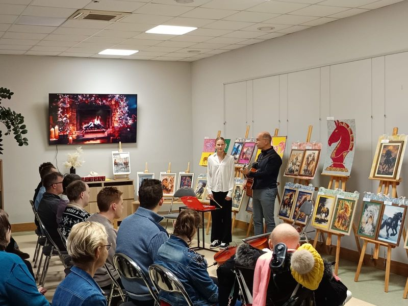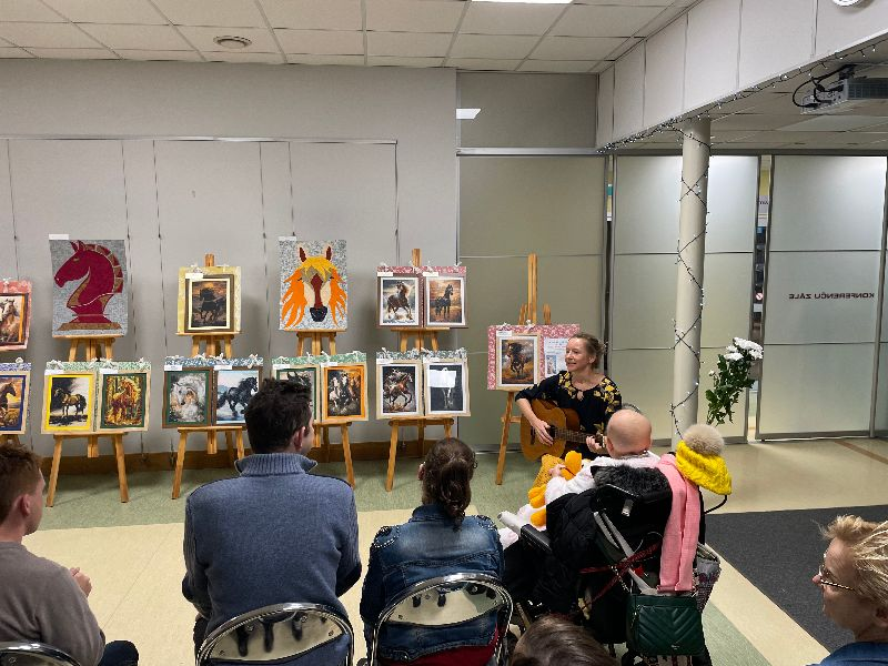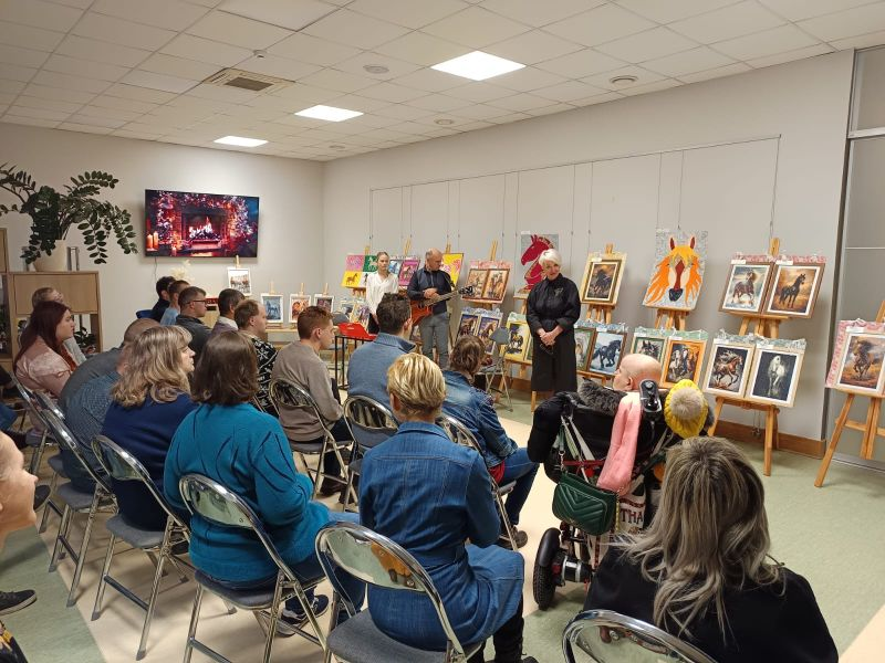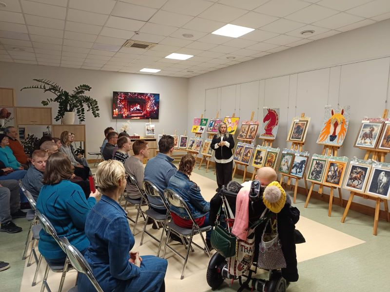 <- AtpakaļPersonu ar invaliditāti un atbalstītāju biedrības Laimiņa radošo darbu izstādes Zirgi mūsu draugi atklāšana 3. decembrī, atzīmējot Starptautisko personu ar invaliditāti dienu, Dobeles novada Centrālajā bibliotēkā tika atklāta Personu ar invaliditāti un atbalstītāju biedrības Laimiņa radošo darbu izstāde Zirgi mūsu draugi. Izstāde tapusi ar Dobeles novada pašvaldības kultūras projektu finansējuma un sociālā uzņēmuma SIA Dare Audeamus atbalstu. Pasākumu atklāja biedrības Laimiņa valdes priekšsēdētājas vietniece Kristīne Briede, kura brīvprātīgi darbojas biedrībā. Viņa pastāstīja par izstādes tapšanu, darbu tehnikām un sadarbības nozīmi ar bibliotēku, paužot lielu prieku par kopīgi īstenotajām iniciatīvām. Ar uzrunu un pateicības vārdiem klātesošos sveica arī Dobeles novada Centrālās bibliotēkas direktore Lana Volante, kura māksliniekiem pasniedza svētku kliņģeri. Muzikālu apsveikumu sniedza Raimonds Bulmers un Elizabete Bulmere. Iedvesmojošas dziesmas izpildīja arī Maija Albāte, radot sirsnīgu un svinīgu atmosfēru. Pasākuma noslēgumā Kristīne Briede sveica visus izstādes autorus, kuri veidojuši darbiņus izstādei. Zirgs kā 2026. gada simbols un vienlaikus īpaši nozīmīgs dzīvnieks cilvēkiem ar funkcionāliem traucējumiem izstādes darbos ieguva emocionāli bagātu un simbolisku nozīmi. Daudziem reitterapija ir kļuvusi par nozīmīgu rehabilitācijas un emocionālā līdzsvara veicināšanas veidu, ļaujot caur kustību un kontaktu ar zirgu stiprināt veselību, drošības sajūtu un emocionālo labsajūtu. Ar zirgiem mēs mācāmies mieru, drošību un uzticēšanos. Katrs zirgs, tāpat kā mēs paši, ir individualitāte ar savu raksturu un enerģiju, uzsvēra izstādes veidotāji. Šī gada izstādes darbus radīja 16 personas ar funkcionāliem traucējumiem, sadarbojoties ar 6 atbalsta personām. Ekspozīcijā dominēja smalkā kristālu mozaīkas tehnika, kas prasa pacietību, precizitāti un rūpību, taču klātesošajiem bija iespēja aplūkot arī citās tehnikās veidotus darbus. Ik gadu meklējam jaunus veidus, kā attīstīt mūsu dalībnieku talantus un radošās prasmes. Zirgu tēma mūs īpaši iedvesmoja, un esam gandarīti, ka mūsu darbi varēja sniegt prieku un iedvesmu arī citiem, pauda biedrības pārstāvji. Izstādes autori vēlreiz apliecināja, ka cilvēki ar funkcionāliem traucējumiem ne tikai vēlas, bet arī var aktīvi piedalīties sabiedrības dzīvē, radot skaistas un vērtīgas lietas, stiprinot cilvēcību, labestību un savstarpējo cieņu. Starptautiskā personu ar invaliditāti diena atgādina par vienlīdzīgu iespēju nozīmi un nepieciešamību veidot vidi, kurā ikviens var piedalīties pilnvērtīgi un ar cieņu. Tā ir diena, kad ikviens no mums var apliecināt savu attieksmi, sapratni un labo gribu risināt cilvēkiem ar invaliditāti svarīgus jautājumus. Sirsnīgs paldies ikvienam izstādes māksliniekam un atbalsta personai par radītajiem darbiem un kopīgo radošo garu! Svētki mums, svētki jums, noslēgumā sacīja Kristīne Briede. Aicinām apskatīt izstādi!