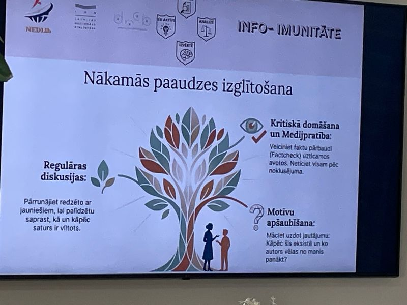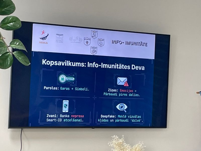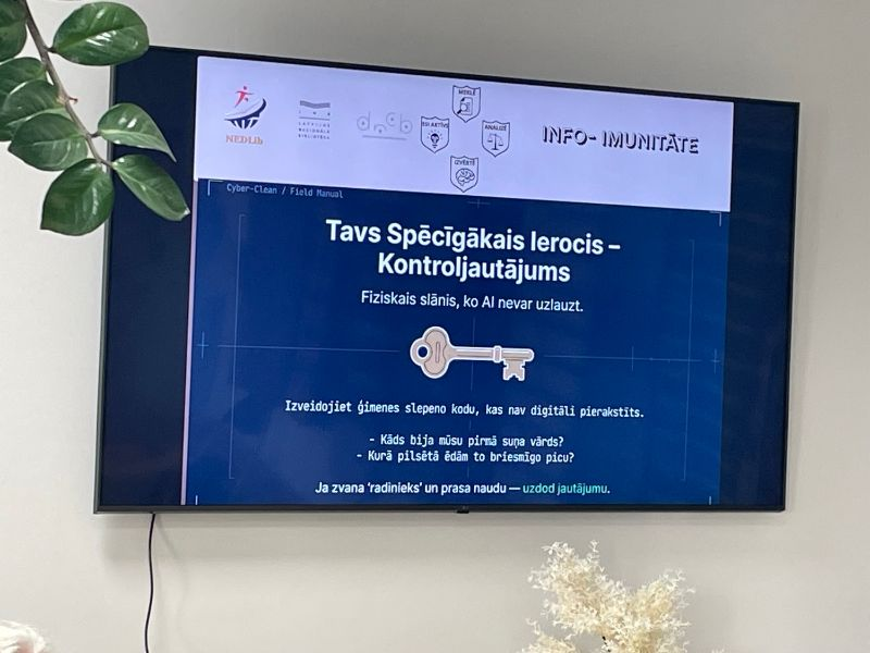 <- Atpakaļ10. un 11. martā Dobeles novada Centrālajā bibliotēkā norisinājās divu dienu apmācības Info-imunitāte: Medijpratības meistarklase ar spēles elementiem Marutas Pētersones vadībā. Dalībnieki praktiskā un draudzīgā gaisotnē stiprināja savas prasmes drošai un gudrai informācijas lietošanai digitālajā vidē. 🌐 Meistarklases laikā soli pa solim tika izzināti četri svarīgi digitālās pratības posmi: 🔍 Informācijpratība Meklē, 🧠 Medijpratība Analizē, ⚖️ Viltus ziņas Izvērtē, 🚀 Spēlē droši Esi aktīvs. Dalībnieki ar dažādu interaktīvu uzdevumu un spēles elementu palīdzību mācījās kritiski izvērtēt informāciju, atpazīt maldinošu saturu un droši orientēties interneta vidē. Noslēgumā dalībnieki saņēma apliecinājumus par dalību, kā arī digitālos materiālus turpmākai izmantošanai. Neizpalika arī sirsnīgas sarunas kafijas pauzēs, kas ļāva dalīties pieredzē un idejās par drošu un atbildīgu digitālo vidi. ☕ Paldies visiem dalībniekiem par aktīvu iesaisti, zinātkāri un pozitīvo atmosfēru! 🙌