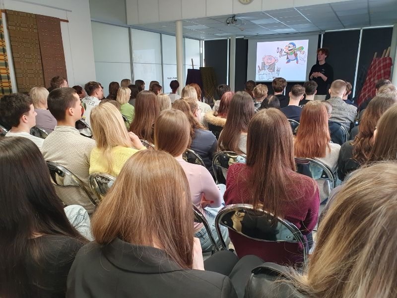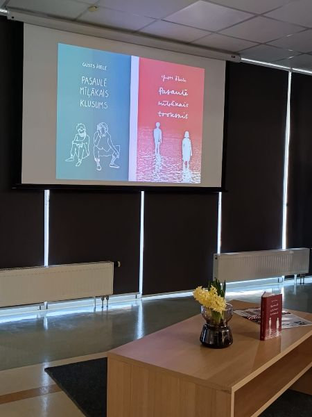 <- AtpakaļNākamā pietura bibliotēka - Gusts Ābele 31. martā Dobeles novada Centrālajā bibliotēkā notika pirmā tikšanās ar autoru VKKF atbalstītā projekta Nākamā pietura bibliotēka ietvaros. Gados jaunais Gusts Ābele ir literāts, aktieris un režisors. Viņš dibinājis jauniešu teātra studiju "Kāpnes", bet šobrīd studē dramatiskā teātra režiju Latvijas Kultūras akadēmijā. Tāpat autors nodarbojas ar prozas rakstīšanu, ir piedalījies literārajā seminārā "Aicinājums" un "Prozas lasījumos", kā arī izveidojis kultūras blogu "Kalambūrs". Gusts sarakstījis divas grāmatas Pasaulē mīļākais klusums un Pasaulē mīļākais troksnis. Balstoties uz tām, tapusi izrāde Klusums un troksnis, kas tiek spēlēta Latvijas Nacionālajā teātrī. Gusta darbi vēsta par jauniešu dzīvi, problēmām un pieaugšanu, tādēļ uz tikšanos ar rakstnieku īpaši tika aicināti vecāko klašu skolēni. Pasākumu apmeklēja audzēkņi no Auces vidusskolas, Dobeles 1. vidusskolas, Dobeles Valsts ģimnāzijas un Dobeles Amatniecības un vispārizglītojošās vidusskolas. Pasākuma laikā jaunais literāts pastāstīja, ka rakstīšanai pievērsies jau pasen, piedaloties dažādās literātu nometnēs. Viņam ir sarakstīti arī darbi, kurus nav plānots izdot, jo tie tapuši mācīšanās procesā. Gusts uzsvēra, ka Latvijā izdod maz literatūras jauniešiem, un pauda viedokli, ka šādus darbus vajadzētu rakstīt tieši gados jauniem cilvēkiem, kuri paši šobrīd izdzīvo šo laikmetu. Rakstnieks arī neslēpa, ka turpina strādāt pie jauniem darbiem. Lai gan Gustam ir tikai 21 gads, viņš jau ir paveicis daudz gan kā režisors un aktieris, gan kā literāts. Klausītāji varēja uzzināt, kāds bijis Gusta ceļš līdz pirmajai grāmatai. Autors demonstrēja nelielu fragmentu no izrādes Klusums un troksnis un aicināja jauniešus iesaistīties spēlē, lai noskaidrotu, kuram no varoņiem viņi ir vislīdzīgākie. Šī bija iedvesmojoša tikšanās jauniešiem, bet nākamais pasākums, kas būs vairāk piemērots bērniem, notiks 14. aprīlī kopā ar rakstnieku un dramaturgu Lauri Gundaru.