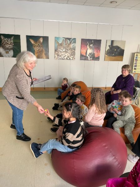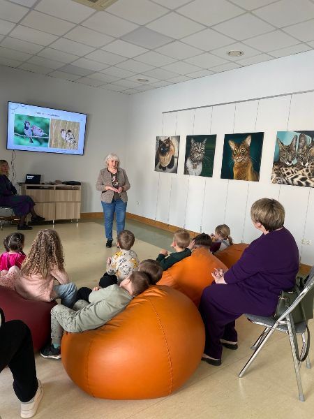 <- Atpakaļ😺 27. martā Dobeles novada Centrālajā bibliotēkā viesojās PII Ābolītis grupiņas bērni. 😺 Ar lielu interesi bērni apskatīja Anitas Kozuliņas pūču kolekciju Pavasaris pūču spārnos, kas izvietota stikla vitrīnās bibliotēkas foajē . Pēc tam kopā ar Bērnu un jauniešu nodaļas vadītāju Evitu Zuti tika izstaigātas un iepazītas visas bibliotēkas nodaļas. Bērni aktīvi iesaistījās sarunās, priecīgi secinot, ka bibliotēkā ir ļoti daudz plauktu ar grāmatām. 😺 Bērnu un jauniešu nodaļā bibliotekāre Agnese parādīja, cik dažādas var būt grāmatas gan pēc lieluma, gan izskata un īpašībām. Bērni ar aizrautību tās pētīja un šķirstīja, atklājot, ka grāmatas var būt ar kustīgiem attēliem, skanošas, čaukstošas un īpaši krāsainas. 😺 Pēc grāmatu apskates bērni tika aicināti uz zāli, kur Dobeles Centrālās bibliotēkas novadpētniecības speciāliste Sandra Kazimiraitė-Eglīte atklāja putnu daudzveidīgo un krāsaino pasauli. Bērni uzzināja, cik bagāta ir daba mūsu dārzos un pagalmos, un cik dažādas var būt putnu dziesmas. Bērni dalījās savās zināšanās par putniem, centās tos atpazīt pēc attēliem, klausījās un atdarināja putnu balsis. 😺 Pēc aizraujošā stāstījuma bērni tika aicināti arī izkustēties rotaļās Putni lido un Putniņdejā. Kā patīkams pārsteigums katrs bērns saņēma koka putniņu, ko varēs izkrāsot pats. No sirds pateicamies Sandrai par siltuma un zināšanu pilno stāstījumu!