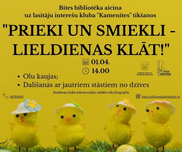 1. aprīlī, Joku dienā, plkst. 14.00 Bites bibliotēka aicina savus lasītājus uz jautru Lieldienu pasākumu Prieki un smiekli Lieldienas klāt!.