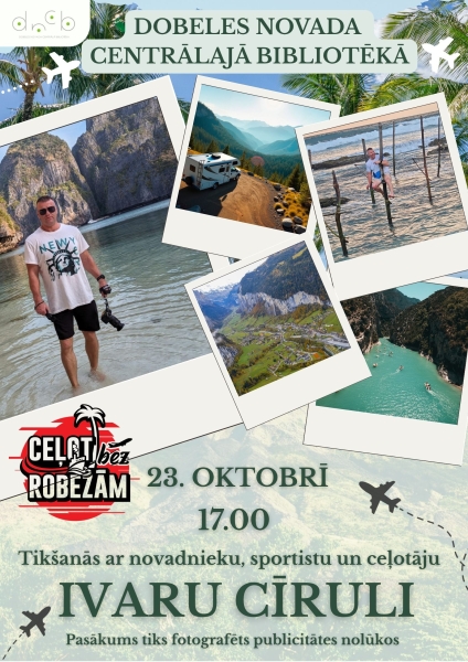 📌 23. oktobrī plkst. 17.00 Dobeles novada Centrālajā bibliotēkā aicinām uz tikšanos ar raidījumu "Ceļot bez robežām" un "Atrasts Baltijā" radītāju un bijušo pasaules čempions spēka trīscīņā Ivaru Cīruli.