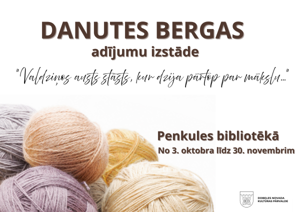No 3. oktobra līdz 30. novembrim Penkules bibliotēkā būs apskatāma penkulnieces Danutes Bergas personālizstāde “Valdziņos austs stāsts, kur dzija pārtop par mākslu...”. Izstāde piedāvā iespēju ielūkoties autores unikālajā rokdarbu pasaulē, kur katrs adījums ir ne tikai amatniecisks meistardarbs, bet arī personisks stāsts, sajūta un noskaņa.