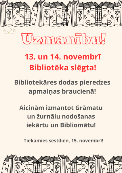 13. un 14. novembrī bibliotēka SLĒGTA!