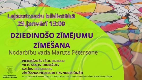 Dziedinošo zīmējumu zīmēšana" ir radoša un garīgi iedvesmojoša nodarbība, kas notiks Lejasstrazdu bibliotēkā Marutas Pētersones vadībā.