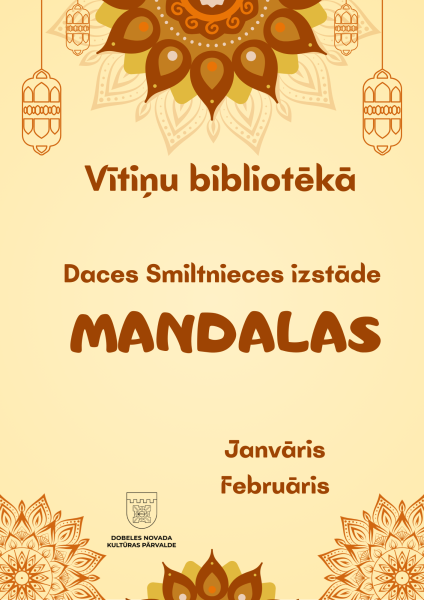 Janvārī un februārī Vītiņu bibliotēka aicina apmeklētājus uz Daces Smiltnieces izstādi “Mandalas”. Izstāde atklāj mandalu gan kā vizuālu gan arī kā garīgu struktūru.