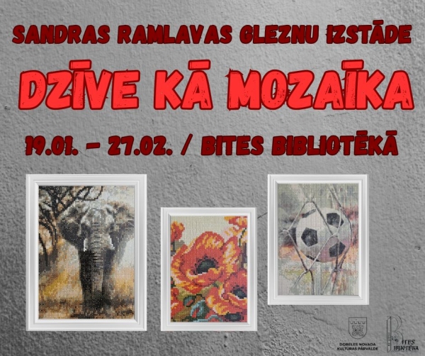 Izstāde “Dzīve kā mozaīka” būs aplūkojama Bites bibliotēkā līdz 27. februārim.