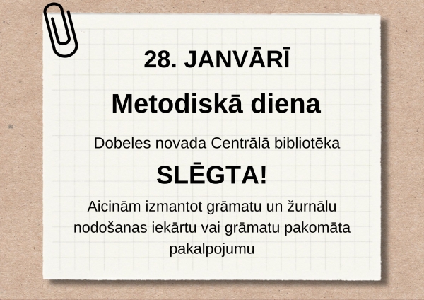 28. Janvārī Dobeles novada Centrālā bibliotēka SLĒGTA!