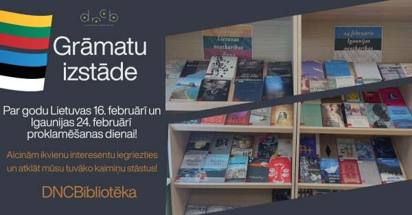 Par godu šiem notikumiem bibliotēkā ir izveidota tematiska grāmatu izstāde, kurā aicinām iepazīt Lietuvas un Igaunijas vēsturi, kultūru, literatūru un personības. Izstādē aplūkojami vēsturiski izdevumi, daiļliteratūra, ceļojumu apraksti un materiāli par Baltijas valstu kopīgajiem ceļiem uz neatkarību.