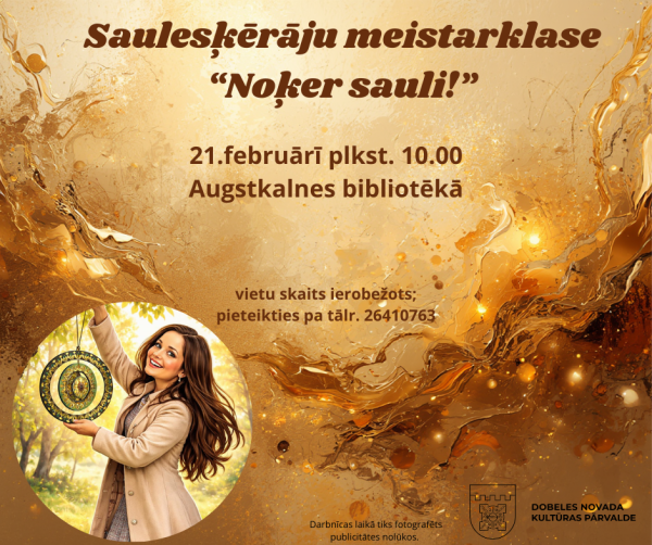 21. februārī plkst. 10.00 Augstkalnes bibliotēkā notiks radošā darbnīca Noķer sauli!, kurā dalībniekiem būs iespēja izgatavot saulesķērāju dekoratīvu elementu, kas atstaro gaismu un piešķir telpai siltumu.