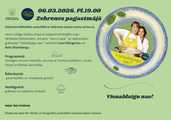 6. martā plkst. 19.00 visi laipni aicināti Zebrenes pagastmājā uz jautru kopā būšanu.