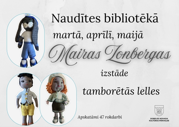 Naudītes bibliotēkā martā, aprīlī un maijā būs apskatāmas Mairas Zonbergas tamborētās lelles.