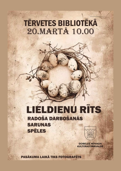 20. martā plkst. 10.00 Tērvetes bibliotēkā norisināsies pasākums Lieldienu rīts, kurā piedalīsies Annas Brigaderes pamatskolas pirmsskolas izglītības grupiņa Mārītes.