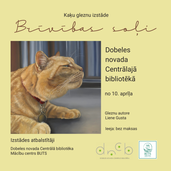 📅 No 10. aprīļa  Dobeles novada Centrālajā bibliotēkā būs apskatāma lielformāta eļļas gleznu izstāde "Brīvības soļi", kurā valda kaķu elegance un noslēpumainība.
