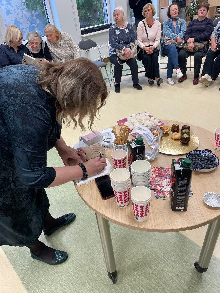 2. oktobrī Dobeles novada Centrālajā bibliotēkā notika saruna ar rakstnieci un grāmatas Nesaki ne jā, ne nē autori Kristīni Jučkoviču. Rakstniece dalījās ar stāstu par saviem radošajiem ceļiem un grāmatas tapšanu. Pirmie literārie darbi bijuši dzejoļi tos Kristīne rakstījusi jau no astoņu gadu vecuma, sākot ar atskaņām. Viņa atzina, ka dzejoļi nākot spontāni kā pati saka: ja viņš ir, tad ir, un gandrīz nekad tos nerediģē. Literārajā darbībā tapusi arī autobiogrāfiska poēma un pat pasaka, ko autore nākotnē vēlētos izdot sadarbībā ar ilustratori, radot īpašu pasaku grāmatu pieaugušajiem. Rakstniece atklāja, ka pirmā viņas grāmata bija stāstu krājums, bet Nesaki ne jā, ne nē ir jau otrais darbs. Grāmatas saknes meklējamas Liepājas studiju laikā, kad tapa maģistra darbs. Tajā iezīmējas niša, kas literatūrā reti aplūkota sieviešu dzīve pēc četrdesmit. Autorei nozīmīgs bijis arī tuvinieku skatījums mamma un krustmāte, lasot manuskriptu, diskutējušas par beigām: vienai šķitis, ka tās ir laimīgas, otrai gluži pretēji. Sarunas laikā rakstniece atzina, ka šis ir viens no viņas personīgākajiem darbiem, jo tajā atspoguļoti arī patiesi notikumi. Tomēr, kā autore uzsvēra, katrs rakstnieks pats zina, cik daudz viņa darbos ir no dzīves un cik no daiļliteratūras. Ar humoru Kristīne piemetināja, ka, izdodot grāmatu, nākas par to kladzināt kā vistai par savu olu. Tikšanās laikā autore lasīja arī savus dzejoļus un atbildēja uz apmeklētāju jautājumiem. Noslēgumā viņa dalījās vēstījumā, kas vijas cauri grāmatai: lai sievietes apzinās sevi, savu spēku un vērtību.