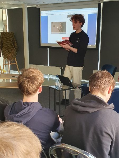 <- AtpakaļNākamā pietura bibliotēka - Gusts Ābele 31. martā Dobeles novada Centrālajā bibliotēkā notika pirmā tikšanās ar autoru VKKF atbalstītā projekta Nākamā pietura bibliotēka ietvaros. Gados jaunais Gusts Ābele ir literāts, aktieris un režisors. Viņš dibinājis jauniešu teātra studiju "Kāpnes", bet šobrīd studē dramatiskā teātra režiju Latvijas Kultūras akadēmijā. Tāpat autors nodarbojas ar prozas rakstīšanu, ir piedalījies literārajā seminārā "Aicinājums" un "Prozas lasījumos", kā arī izveidojis kultūras blogu "Kalambūrs". Gusts sarakstījis divas grāmatas Pasaulē mīļākais klusums un Pasaulē mīļākais troksnis. Balstoties uz tām, tapusi izrāde Klusums un troksnis, kas tiek spēlēta Latvijas Nacionālajā teātrī. Gusta darbi vēsta par jauniešu dzīvi, problēmām un pieaugšanu, tādēļ uz tikšanos ar rakstnieku īpaši tika aicināti vecāko klašu skolēni. Pasākumu apmeklēja audzēkņi no Auces vidusskolas, Dobeles 1. vidusskolas, Dobeles Valsts ģimnāzijas un Dobeles Amatniecības un vispārizglītojošās vidusskolas. Pasākuma laikā jaunais literāts pastāstīja, ka rakstīšanai pievērsies jau pasen, piedaloties dažādās literātu nometnēs. Viņam ir sarakstīti arī darbi, kurus nav plānots izdot, jo tie tapuši mācīšanās procesā. Gusts uzsvēra, ka Latvijā izdod maz literatūras jauniešiem, un pauda viedokli, ka šādus darbus vajadzētu rakstīt tieši gados jauniem cilvēkiem, kuri paši šobrīd izdzīvo šo laikmetu. Rakstnieks arī neslēpa, ka turpina strādāt pie jauniem darbiem. Lai gan Gustam ir tikai 21 gads, viņš jau ir paveicis daudz gan kā režisors un aktieris, gan kā literāts. Klausītāji varēja uzzināt, kāds bijis Gusta ceļš līdz pirmajai grāmatai. Autors demonstrēja nelielu fragmentu no izrādes Klusums un troksnis un aicināja jauniešus iesaistīties spēlē, lai noskaidrotu, kuram no varoņiem viņi ir vislīdzīgākie. Šī bija iedvesmojoša tikšanās jauniešiem, bet nākamais pasākums, kas būs vairāk piemērots bērniem, notiks 14. aprīlī kopā ar rakstnieku un dramaturgu Lauri Gundaru.